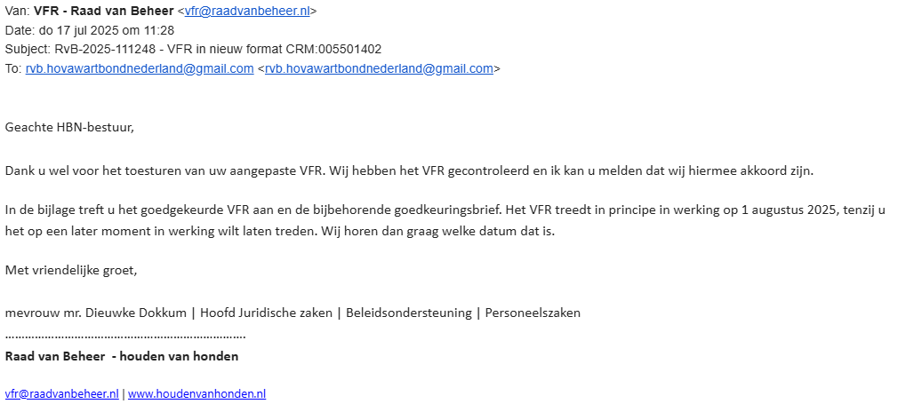 Statuten   Huishoudelijk reglement   Fokreglement VFR   Kamer van Koophandel